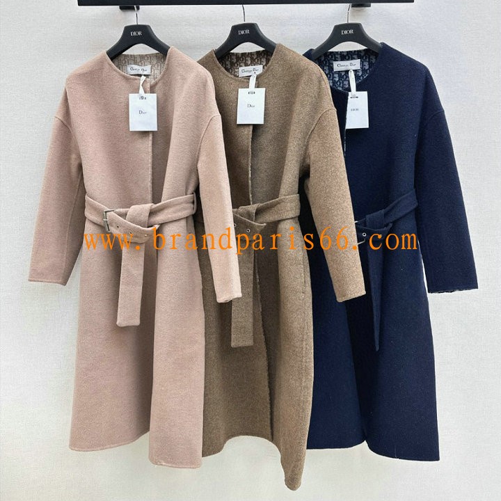 WTCD25023-XG クリスチャンディオール CHRISTIAN DIOR 2025年新作 ダブルフェイス ウール コート ロングスリーブ アウターコート クルーネック レディース