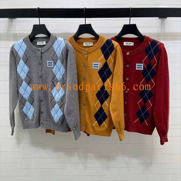 MKMM25015-XG ミュウミュウ MIUMIU 2025年新作 ニットコート カーディガン ロングスリーブ ウールニット 長袖 クルーネック レディース