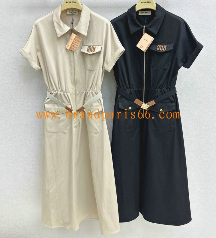 KQMM26004-XG ミュウミュウ MIUMIU 2026年新作 ミディドレス ショートスリーブ ワンピース カジュアル 半袖 レディース