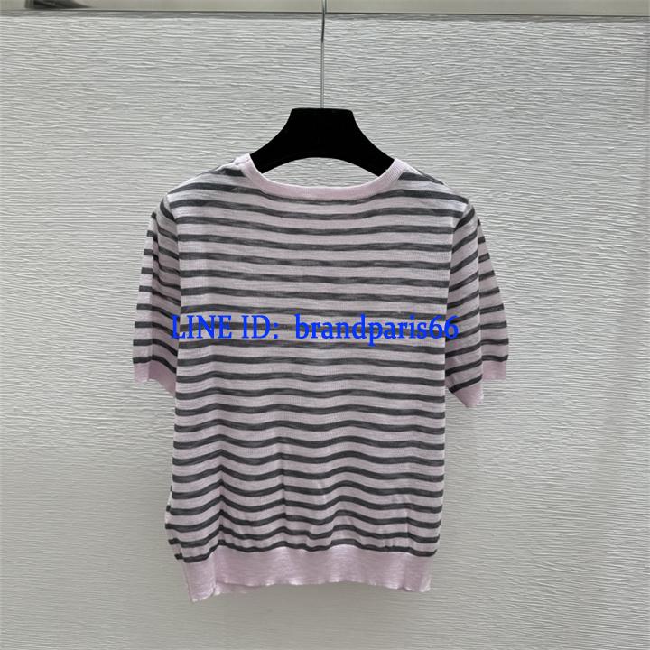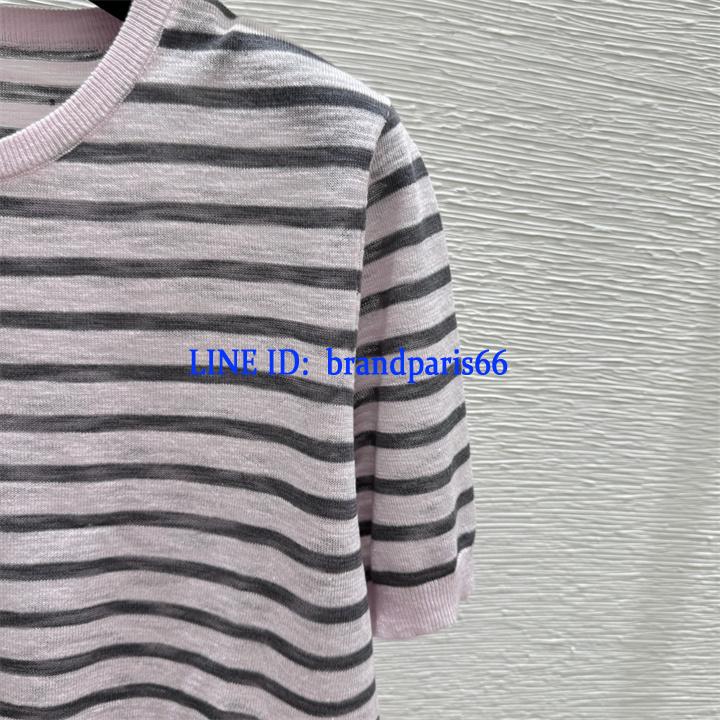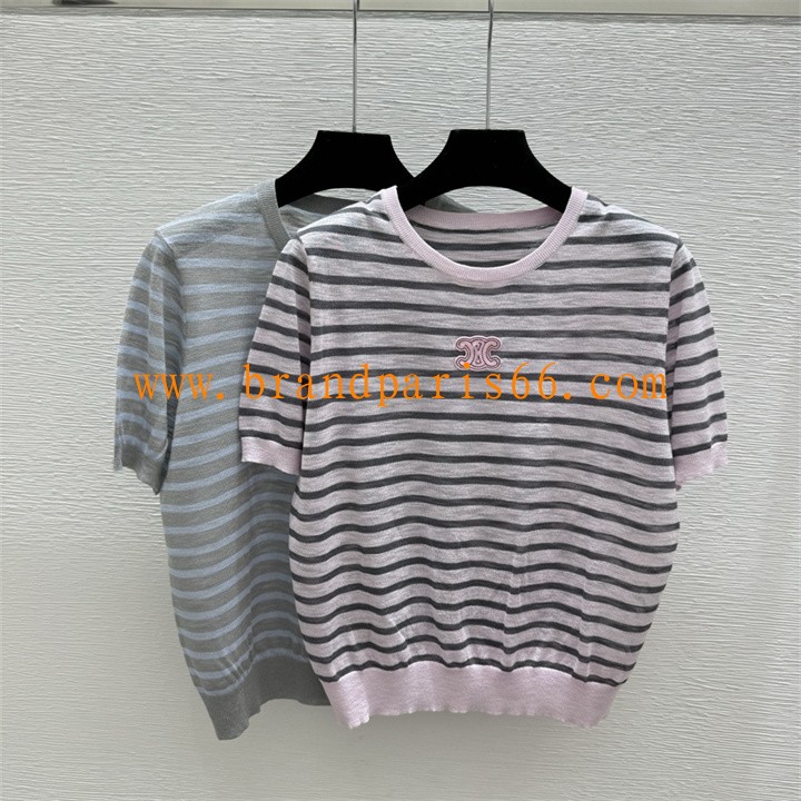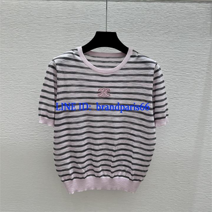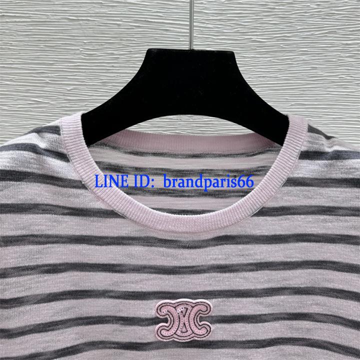 MDCE26011-XG セリーヌ CELINE 2026年新作 ストライプ ショートスリーブ ウール セーター クルーネック レディース