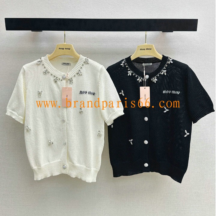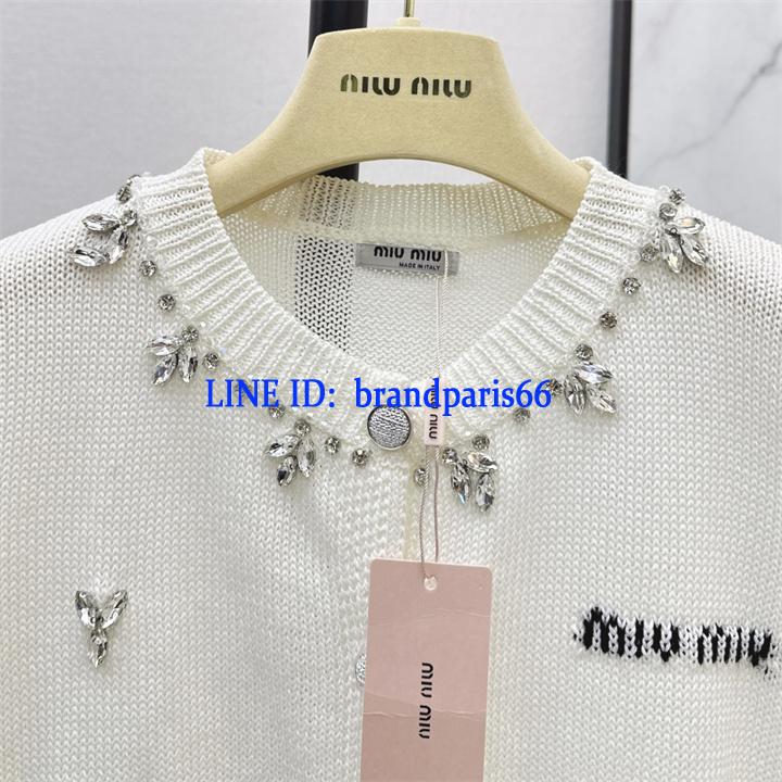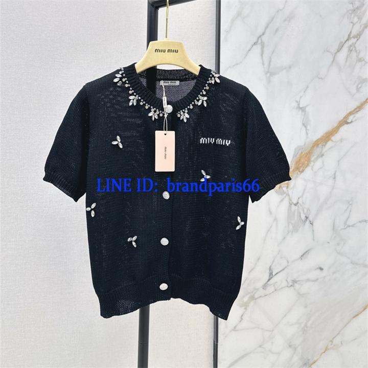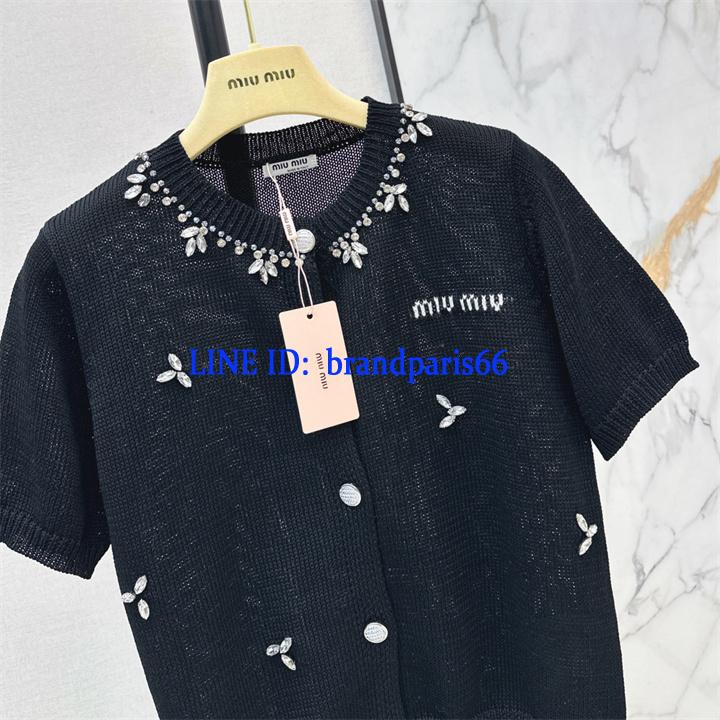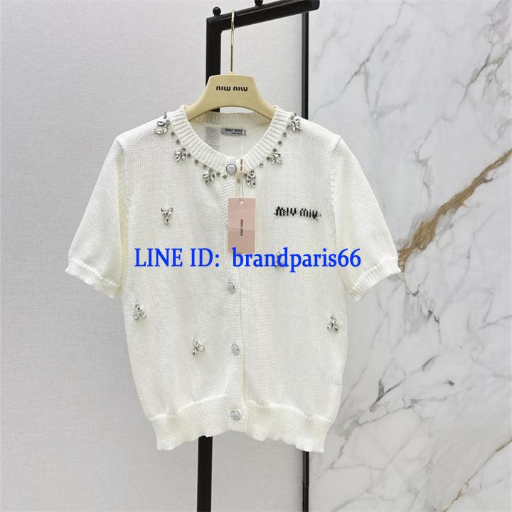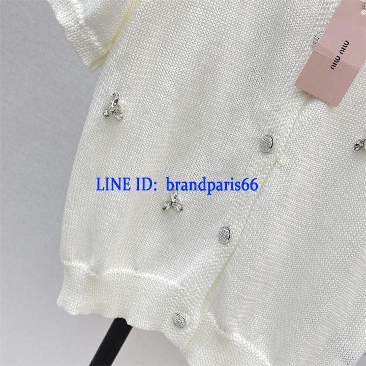 MDMM26032-XG ミュウミュウ MIUMIU 2026年新作 ショートスリーブ カーディガン ウール セーター クルーネック 半袖 レディース