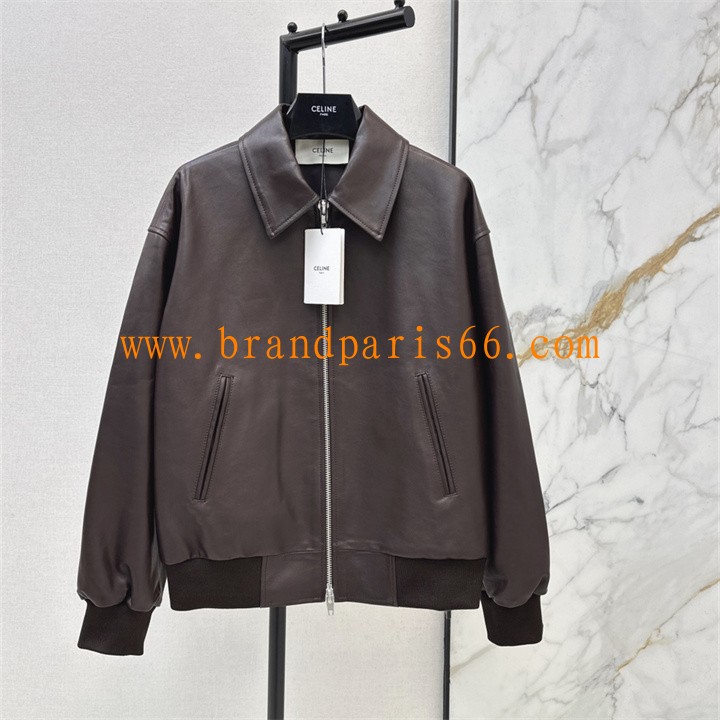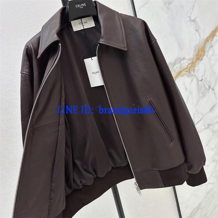 WTCE26005-XG セリーヌ CELINE 2026年新作 ロングスリーブ レザー ジャケット ジップ開閉式 トップスコート レディース